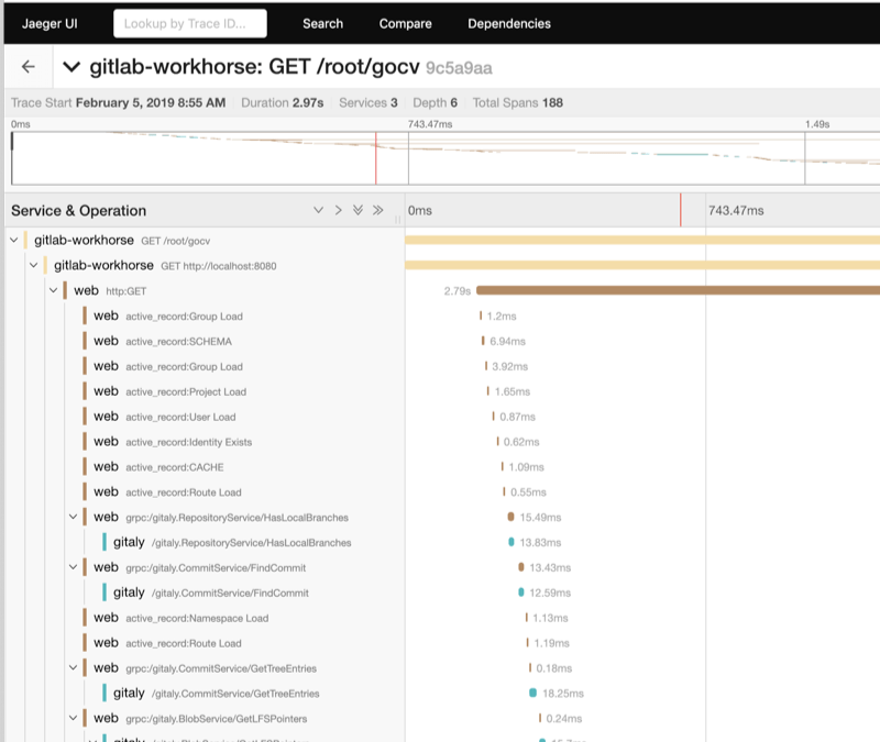 13:43:45 gitaly.1 | 2019/02/12 13:43:45 skipping tracing configuration step: tracer: unable to load driver mytracerBy default, GitLab ships with the Jaeger tracer, but other tracers can be included at compile time. Details of how this can be done are included in the LabKit tracing documentation.