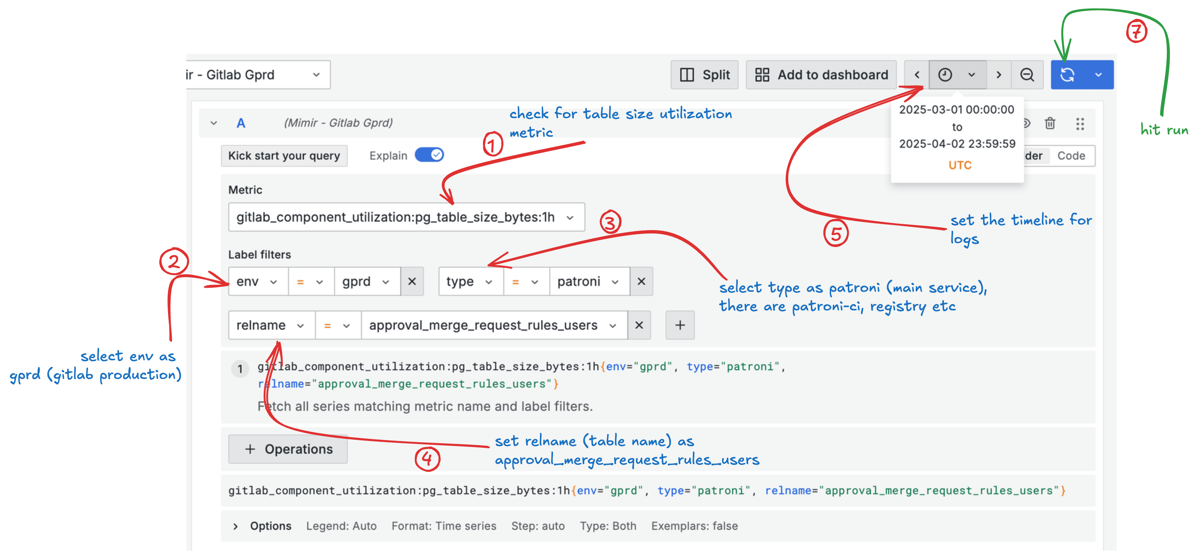 gitlab_component_utilization:pg_table_size_bytes:1h. - Label filters: