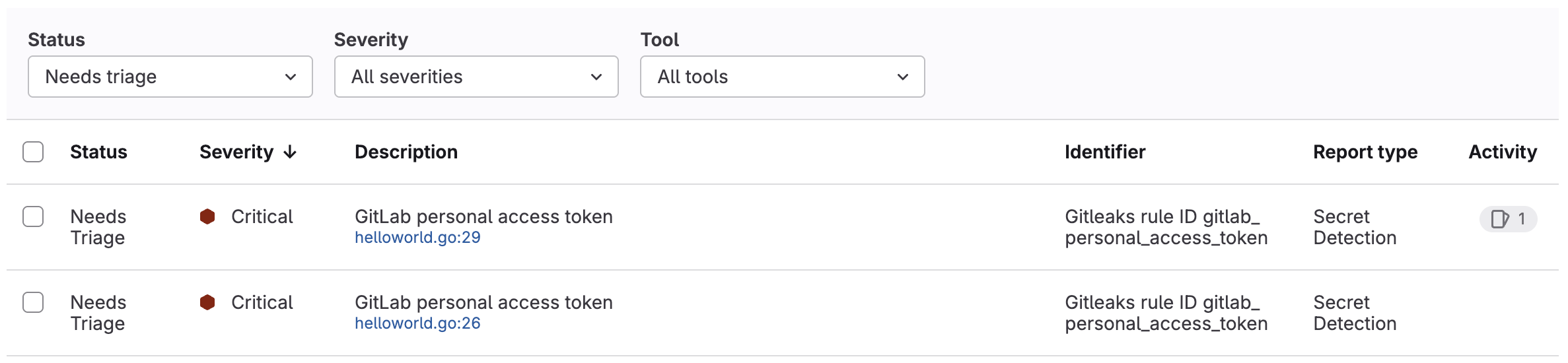 You can change the status, severity, or both of a finding or vulnerability in the pipeline’s security tab. Any changes made to a finding persist when the branch is merged into the default branch.
