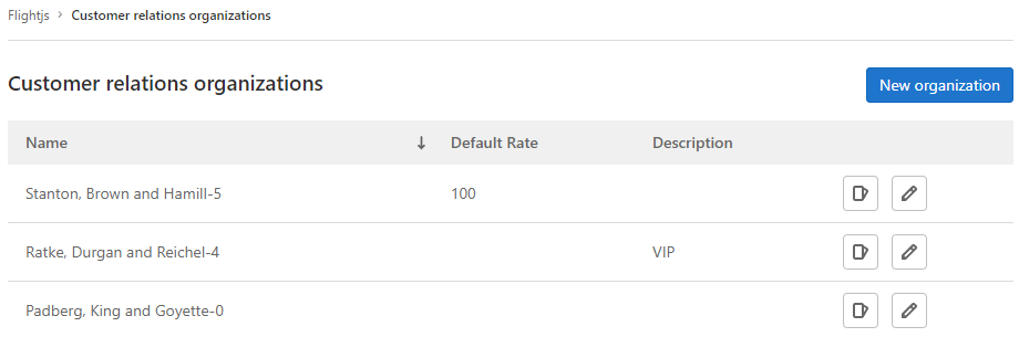 - Next to the organization you wish to edit, select Edit ( ).