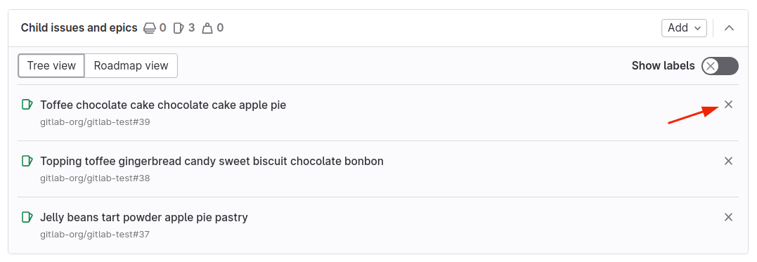 You can add any epic that belongs to a group or subgroup of the parent epic’s group. New child epics appear at the top of the list of epics in the Child items section.