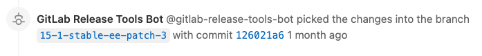 The system note crosslinks the new commit and the existing merge request. Each deployment’s list of associated merge requests includes cherry-picked merge commits.